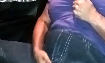 Bigtitted cabbie jerking backseat customer