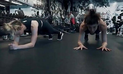 Kaley Cuoco working out at the gym with other honies