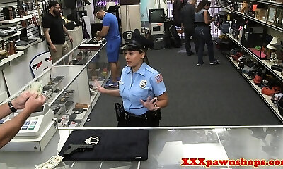 Real cop flashes her jugs to pawnbroker for cash