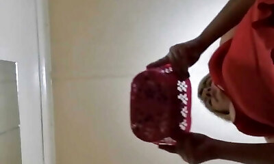 Showcasing off my bright red thongs and satin bikini