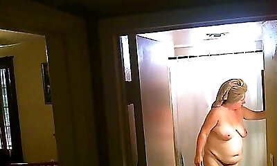 Funny fake bukkake show with amazing giant breasted blonde bombshell