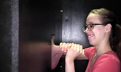 Blond Petite Whore Blowing Off Cocks In Glory Hole Ass Fuck!