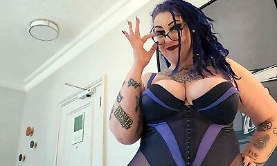 BBW MiLF with big tits and tats gives pierced cock a palm job.