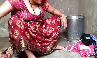 Indian house wifey bathing outside