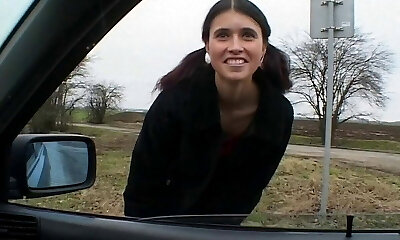 Anhalterin zeigt ihre Titten und Coochie und pinkelt
