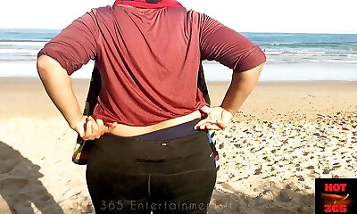 Wife demonstrates her cleavage in the Outdoor Beach