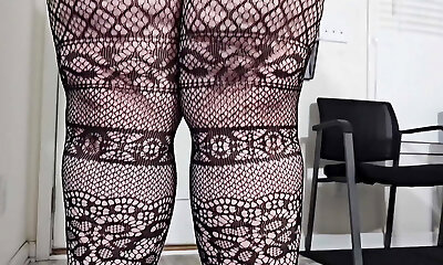 Ample tits Milf secretary in mini skirt and pantyhose teases at job interview
