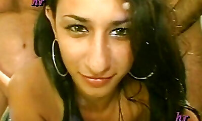 HD POV video of black-haired Abbie Maley sucking her fellow's dick