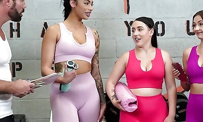 Three sizzling babes come to gym for exercising but they do some other insatiable things