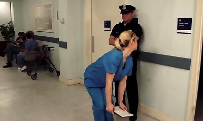 Nurse Tara Lynn Fox drops on her knees to give a grubby blowage